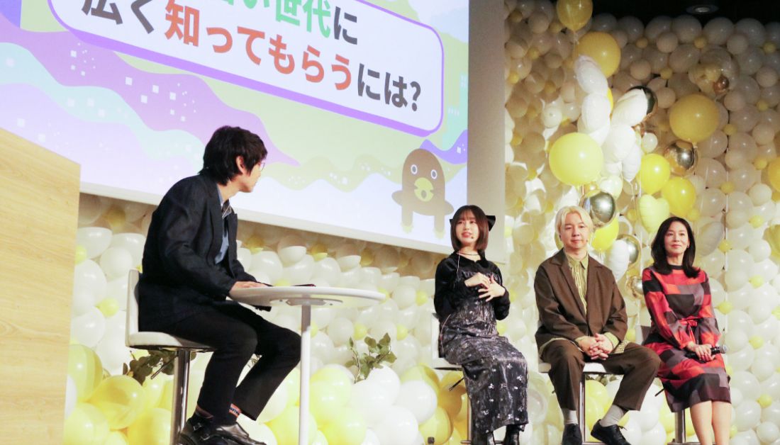 第二部には、事業創造大学院大学客員教授でキャスター・コメンテーターの伊藤聡子さんも加わり、なえなのさん、小宮さん、相田さんと、地層処分を多くの人に知ってもらうためにどうすればいいのか、アイデアを出しながら語り合いました。