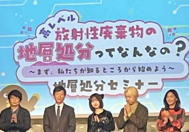 2025年11月23日、福岡市で若い世代を対象にしたセミナー「高レベル放射性廃棄物の地層処分ってなんなの?~まず、私たちが知ることから始めよう~」を開催しました。ゲストには女優・タレントのなえなのさんやお笑い芸人の三四郎さん、キャスター・コメンテーターの伊藤聡子さんらを迎え、会場には約200名の方にご来場いただきました。約半数は20代以下の若い世代が中心で、YouTubeの同時配信では200名以上の方々に視聴いただくなど、会場・オンライン双方で盛況となりました。
