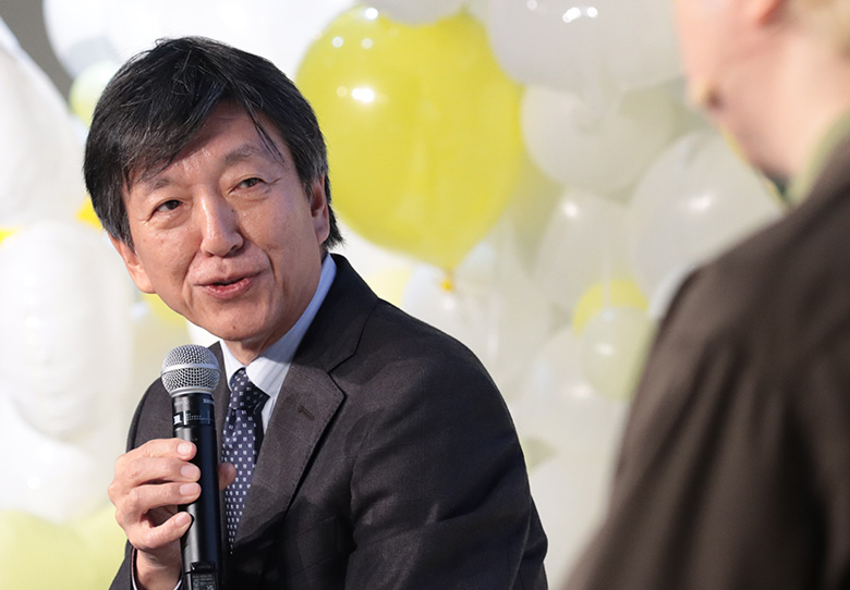 セミナーの第一部では、5つの疑問をテーマに、NUMOの山口理事長による解説のもと、なえなのさんと三四郎さんと来場者が一緒にクイズも交えながら、地層処分について楽しく学びました。また、なえなのさんが会場内に隠されたガラス固化体の模型を探すために、ステージを降りて来場者に手を振りながら来場者席を巡る場面も。会場内の距離を縮めながら進行しました。
