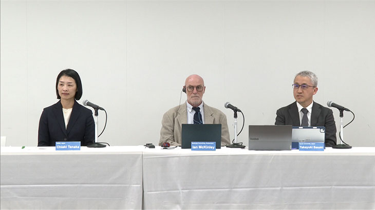 左から司会のNUMO田中 千暁、座長のIan McKinley氏(McKinley Consulting)、佐々木隆之氏(京都大学大学院)